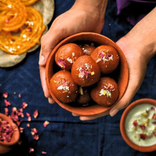 Freshly made Rasgulla soaked in sweet sugar syrup, served in a traditional bowl, highlighting their soft and spongy texture.